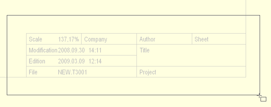 A drawing frame (drawing sheet) containing a title block and borders for drawing you will need in the schematic mode. Maybe you would like to fix the title of the drawing, drawing date, author, last modified or similar.![]()