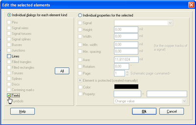 Tick the box "Text" and say OK. Now select from the various options within the "Change Texts" dialog: