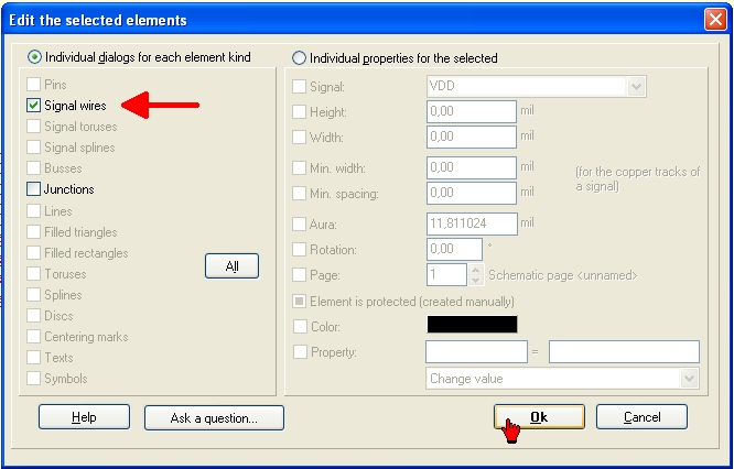 In the dialog place a tick at "Signal Wires" and press OK. The dialog "Change Signal Wires" opens: