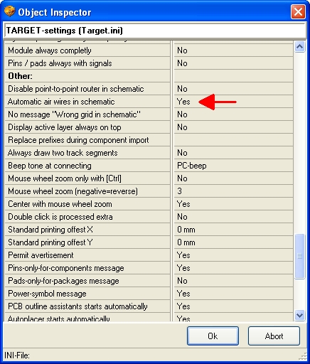 You can completely switch off the display of purple air wires in dialog: "Settings/Settings INI-File". Scroll down to section "Other".